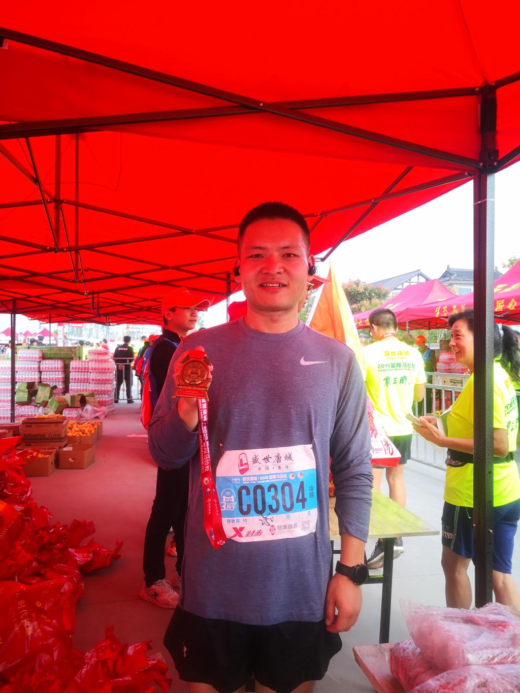 美术学院学生裴亚建以3小时40分的成绩,成为我校第一位冲过“全马”终点的参赛者。“冲过终点的时候真的特别兴奋!后半场特别是最后7、8公里的时候,就是一边‘崩溃’一边坚持,这既锻炼了身体,也磨砺了意志。”裴亚建说,自己每天坚持锻炼,已经先后在各地参加了十几场半程马拉松比赛,今年是自己第一次参加“全马”。