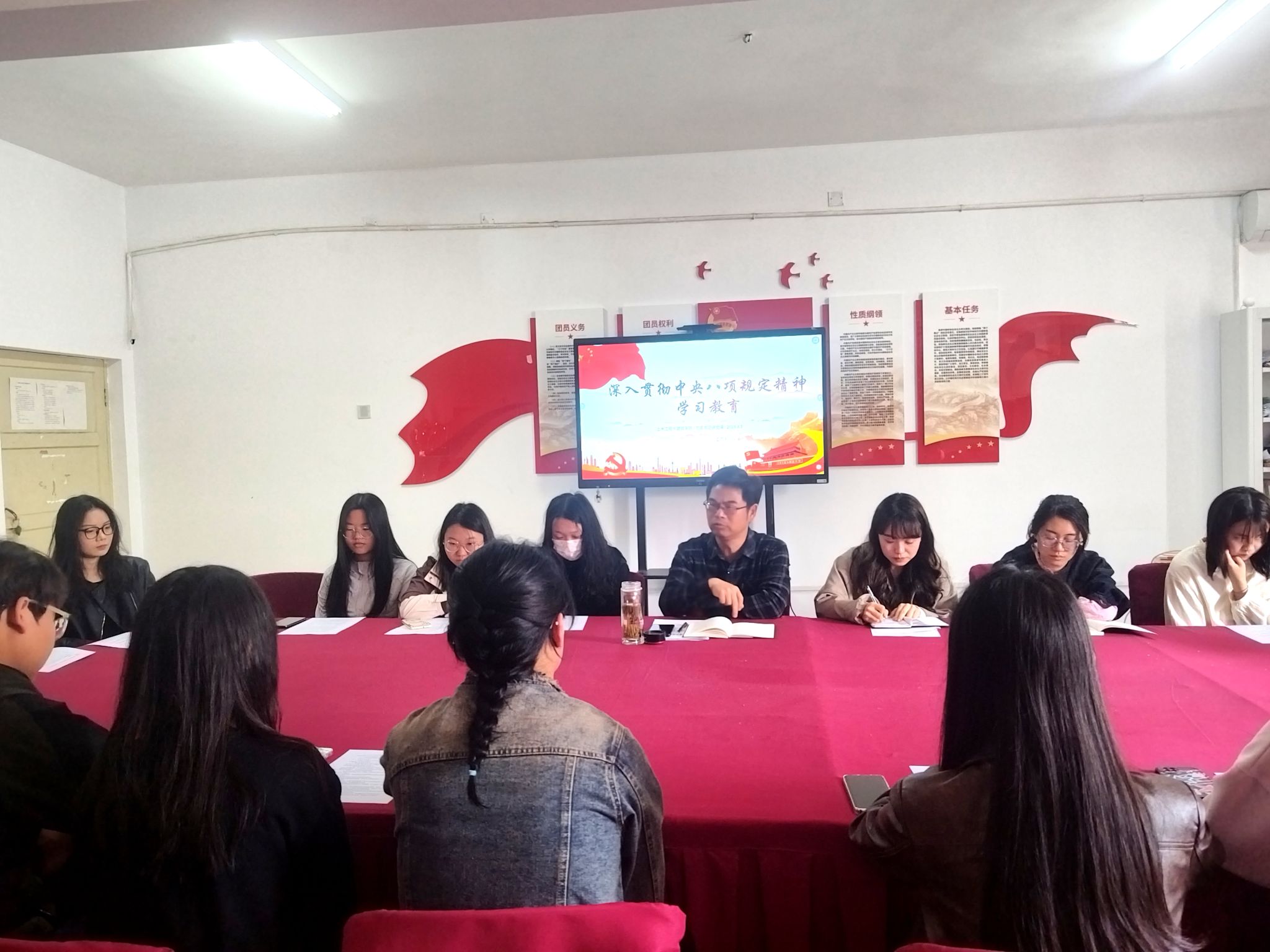 黄海解读了学校开展深入贯彻中央八项规定精神学习教育的实施方案,从“为何学”“学什么”“如何学”三个维度进行讲解,希望毕业生党员们提高政治站位,在学思践悟中坚定理想信念;要强化党性修养,以党章规定规范言行举止;要注重学用结合,将廉洁自律融入职业发展全过程。