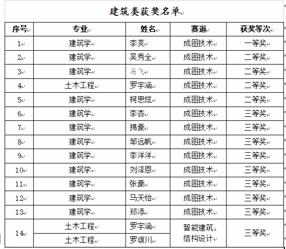 土建学院一直高度重视学生的技能培养和提升,通过校赛、省赛、国赛等各级赛事,营造比技能、赛技能的良好氛围,推动教学改革创新,提升人才培养质量。本次优异成绩的取得,离不开学院的大力支持,是学子们刻苦训练、认真钻研的成果结晶,充分展现了土建学子的团队协作及创新精神,也将激励更多学子在未来的学科竞赛中再创佳绩!让我们共同期待各位参赛队员在七月国赛中的精彩表现!