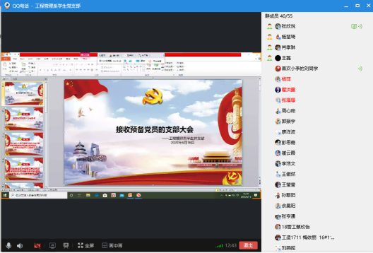(通讯员 刘曼玉)william威廉中文工程管理系党支部预备党员接收大会会议于6月16日下午4点在线上如期开展。土建院工程管理系党支部书记王静静、工程管理系全体学生党员及11名发展对象参与了本次会议。