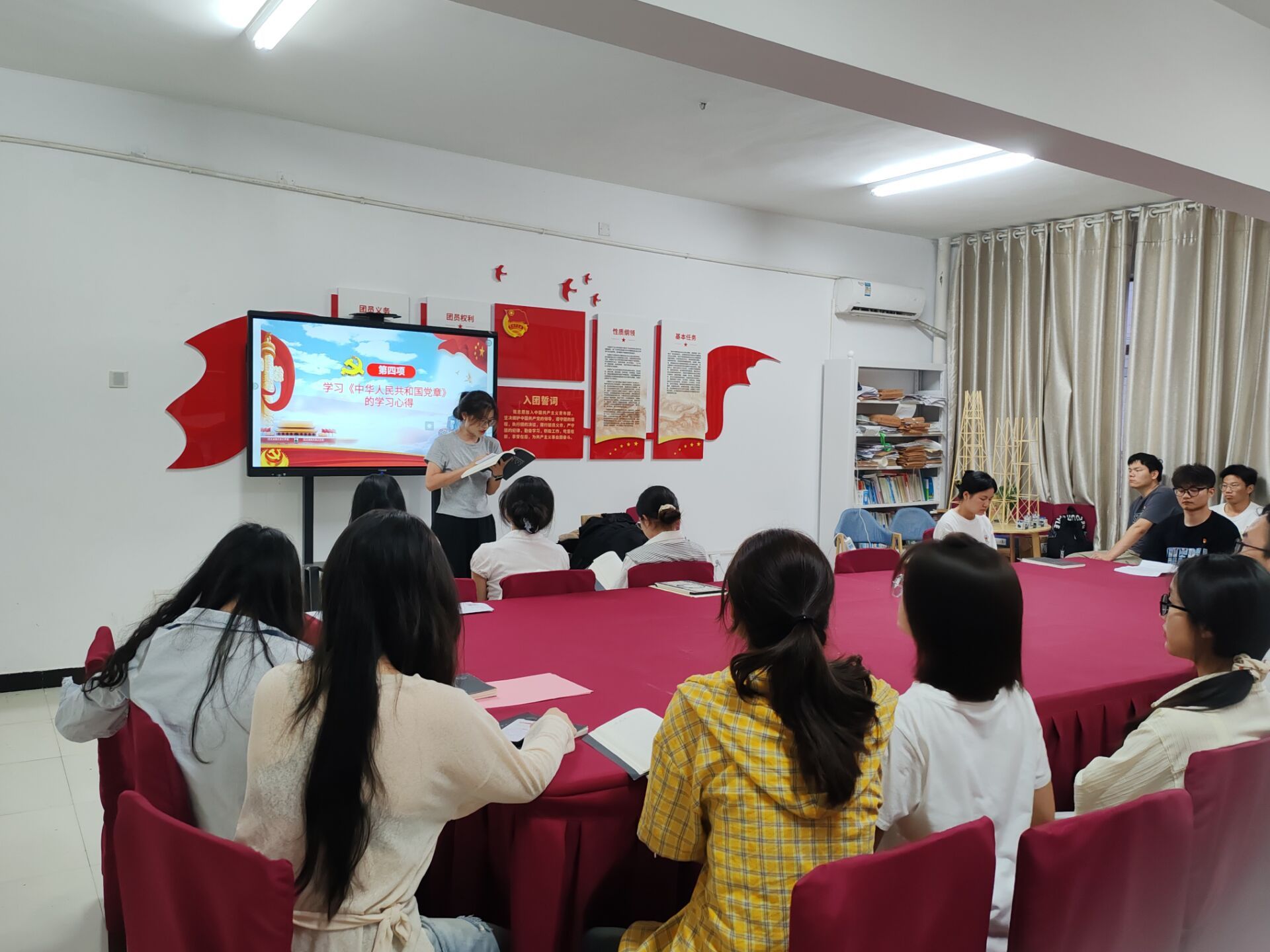 本次党日活动围绕八项内容展开。第一项:全体起立,奏唱国歌《义勇军进行曲》;第二项:全体学生重温入党誓词;第三项:由危劲怡同志带领大家学习诵读《中国共产党章程》;第四项:由建筑与城市更新系学生党支部卢芙蓉分享学习心得;第五项:由道路交通工程系学生党支部黎璐璐为大家讲解以“一体推进学查改,担当实干助发展”为主题的党课,主要内容为:一体推进的重要性,担当实干的精神,学查改的核心内容和未来展望;第六项:夏小强,陈金钰和后欣茹三位同志进行交流发言;第七项:各支部小组围绕党日活动主题相互讨论,分享学习心得;第八项:组织各位党员将本月党费交给支部助理。