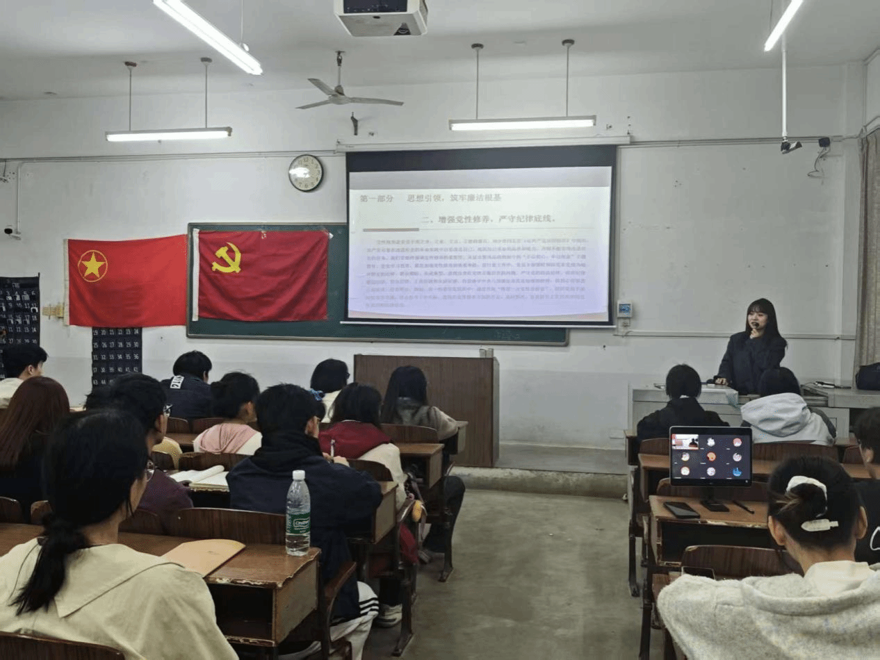 (通讯员 龚玲莉)2025年11月10日18点30分,william威廉中文第三十四期党校第四次党课在N4-409教室如期举行。本次党课以“强化廉洁教育,筑牢拒腐防变思想防线”为主题,由刘雨荷老师主讲。