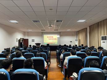 规定的时间,规定的地点,土建学院21级各班学生代表有序地进入会议室。首先,由王静静介绍潘世东教授,接着,潘世东为我们详细讲解汉水文化与中华文明。从空间、时间和历史地理学、考古学、哲学等多维度、多角度论证汉水文化的悠久历史和文明伟绩,凸显汉江中华民族的母亲河、中华民族和中华文明摇篮的崇高地位。