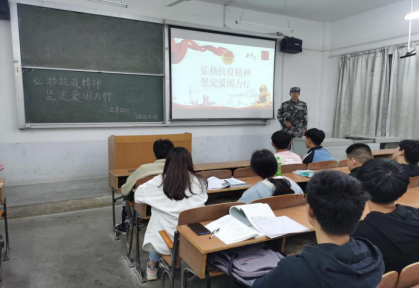 活动开始,肖玉栋先向同学们介绍了习近平总书记提出的“生命至上、举国同心、舍生忘死、尊重科学、命运与共”的伟大抗疫精神。随后向同学们播放了抗疫期间的十个感人故事——再战、承诺、战疫、出征、勇敢、忘我、担当、整休、坚守、鼓励。同学们眼圈微红,有些哽咽,深刻地感受到伟大抗疫精神。随后,肖玉栋进一步阐述了“抗疫精神的历史传承与现实意义”、“新时代抗疫精神的丰富内涵”以及“新时代抗疫精神的历史意义”。最后,肖玉栋激励大家以先进为榜样,以更加饱满的热情投入到大学生活中。