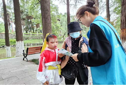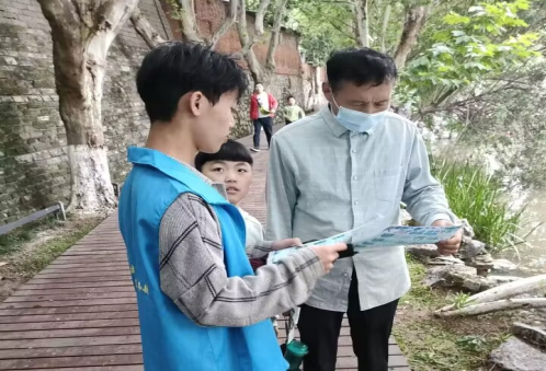 活动负责人讲解完注意事项后,志愿者们向来来往往的市民分发宣传单并细致讲解6月5日世界环境日的由来,宣讲“绿色出行、节约用电、节约用水、垃圾分类”等环保知识,甚至有部分市民主动参与此次志愿服务活动中。在大家的共同努力下,地面的垃圾按照垃圾分类放入指定位置,公园面貌焕然一新。