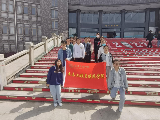 志愿者在图书馆前进行拍照合影