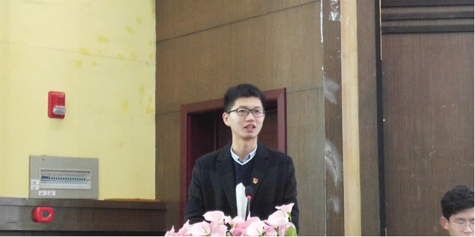 “吃百姓之饭,穿百姓之衣,莫道百姓可欺,自己也是百姓;得一官不荣,失一官不辱,勿说一官无用,地方全靠一官”刘潇用一副对联激励着学生干部要做表率作用,多加学习,将学生工作落到实处。刘潇多次利用经典词句“一屋不扫何以扫天下”、“上梁不正下梁歪”强调学生干部要从小事做起才能稳步提升自身技能,并且学生干部对学生干事要有表率作用,这样部门才能有良好风气。最后寄语全体成员能够学习技能、广交朋友、服务全体学生。