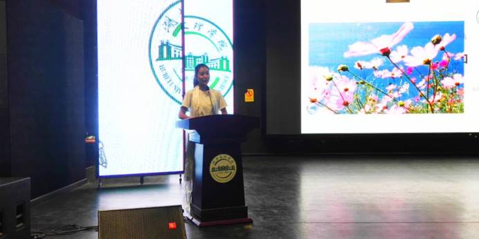 主持人宣布比赛正式开始,全场鸦雀无声,静静地等待第一位选手的出场,第一位选手邱杨雨婷以“格桑花”支教为题赞扬那些默默奉献自己青春的志愿者们,他们作为一名学生,同时也是一位老师,在支教之路中自己的梦想也会像格桑花一样绽放。