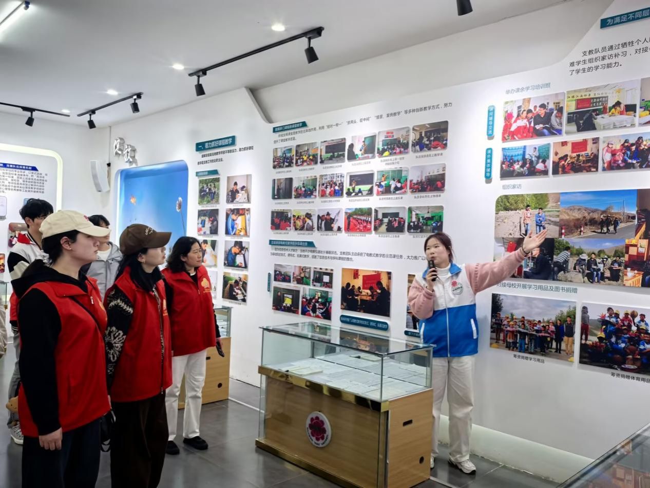 在展厅讲解员的引导下,两支队伍依次参观了“含苞”“绽放”“流芳”“花语”四大主题展区。“含苞”展区:通过历史影像和文献资料,志愿者们了解到WilliamHill中文自2014年起响应襄阳市对口援藏号召,组建“格桑花”支教团队支援西藏琼结县教育的初心。首批队员克服高原环境挑战,为当地教育注入新活力。“绽放”展区:一幅幅支教照片、一封封学生手写信,展现了支教队员创新教学实践、推动信息技术与课程融合的历程。团队开设“第二课堂”、建立心理辅导室、捐赠图书等举措,成为提升当地教育质量的生动注脚。“这些带着高原泥土的物件,比任何教科书都更震撼心灵。”砼心筑梦志愿服务队学生孙博源在观展笔记中写道。“流芳”展区:陈列的荣誉证书和媒体报道,见证了团队荣获“中国好人榜”“全国民族团结进步模范集体”等国家级表彰的卓越成效。校地互访43次、西藏籍学生就读人数攀升等成果,彰显汉藏情谊的深化。“花语”展区:三赴高原并扎根西藏的吴顺喜、带病坚守岗位的项立刚等队员的故事,让志愿者们深刻感悟“青春之花绽放在祖国最需要的地方”的奉献精神。“原来教育扶贫不是简单的知识传授,而是用生命唤醒生命。”巷阳花志愿服务队队长邹关勇在交流中感慨道。