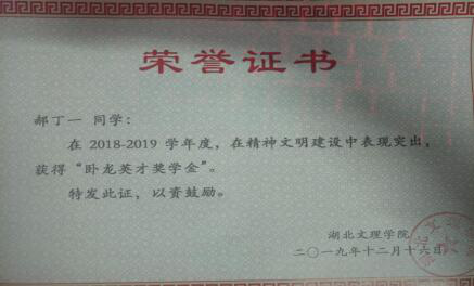 郝丁一,男,土木工程1712班级优秀毕业生,曾获得过卧龙英才奖学金、创新创业奖学金、三等奖学金、三好学生,担任过志愿服务部部长、土木工程1913班代理班主任、心理委员,参加过省交建厅项目、参加过两次全国承重大赛、工程测量大赛、辩论赛三等奖、襄阳马拉松优秀志愿者。