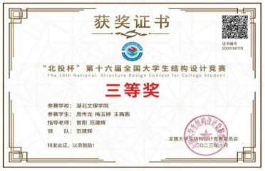 学习之余,梅玉婷积极参加各类学科竞赛。获得2023年“北投杯”第十六届全国大学生结构设计大赛国家级三等奖和最佳创意奖、2023年“中治南方杯”第十届全国大学生结构设计大赛省赛一等奖、2022年和2023年连续两年大学生结构设计竞赛校赛一等奖、2023年数字建筑创新应用大赛——BIM数维设计建模竞赛国家级二等奖、学创杯创新创业模拟大赛校赛二等奖等多项学科竞赛奖项。大学生创新创业竞赛获批省级项目《BIM技术在建筑结构检测与评估的应用》、校级项目《“爱暖童心”——留守儿童阳光“助航”计划》。大二至大三期间发表学术论文《BIM 技术在建筑结构检测与评估的应用》和《新型TPO防水卷材施工优化探讨》。